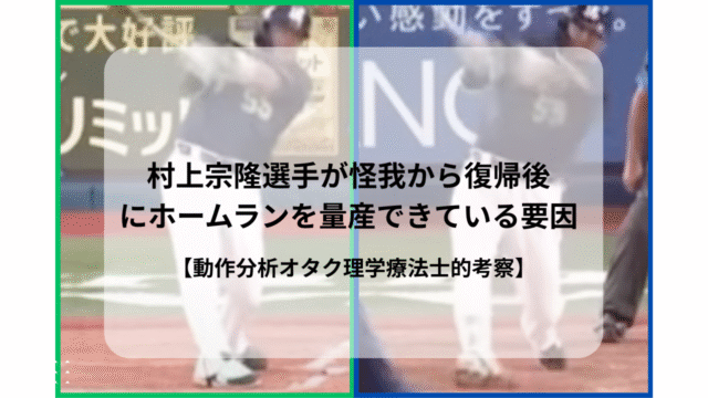 理学療法士的考察 もはやメジャー移籍決定?村上宗隆選手が怪我から復帰後にホームランを量産できている要因【動作分析オタク理学療法士的考察】 2025年9月24日 alignment-care-senter おざぶろ 1. はじめに 理学療法士の尾澤です。小学生の頃にリトルリーグから野球を始め、硬式野球7年、軟式野球5年、指導歴10年以上と野球歴は …